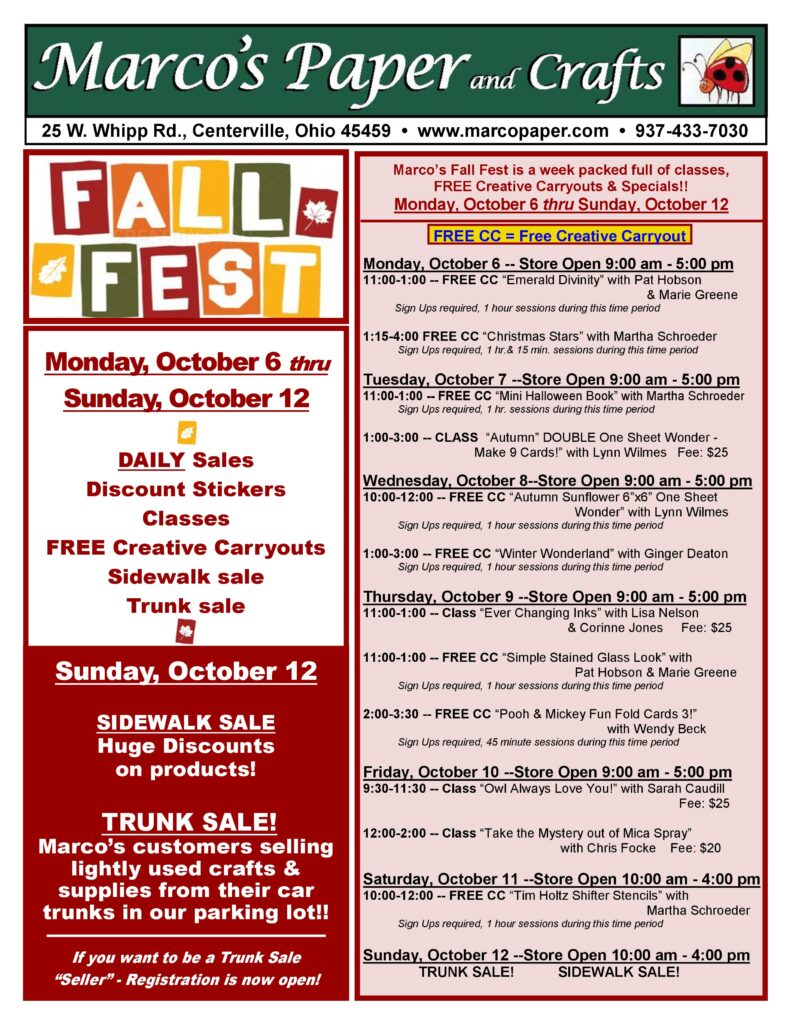 And it all winds up with the annual Trunk Sale on Sunday, October 12.