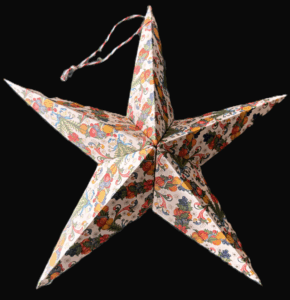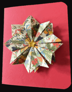 We will make two fun origami Christmas projects- a tea bag fold card and a star ornament. The design paper, ephemera, etc. may vary from the samples.