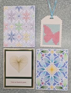 Maureen will be demonstrating how to create beautiful stitched cards.  A wide variety of dies used will illustrate various samples that have been stitched.  Students will have the opportunity to ask questions, learn dos and don’ts of stitching, and briefly do a stitch or two.  This is a demo!