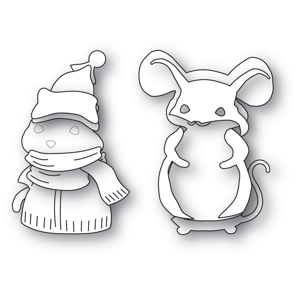 This die measures approximately 1.6 x 2.1 inches mouse, 1.2 x 0.9 inch sweater, 1 x 0.8 inch scarf, 0.8 x 0.9 inch hat