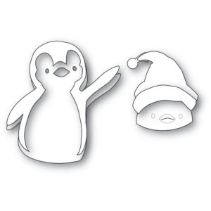 This die measures approximately 2.5 x 2.9 inches penguin, 1.9 x 1.8 inches scarf, 1.7 x 1.2 inches hat