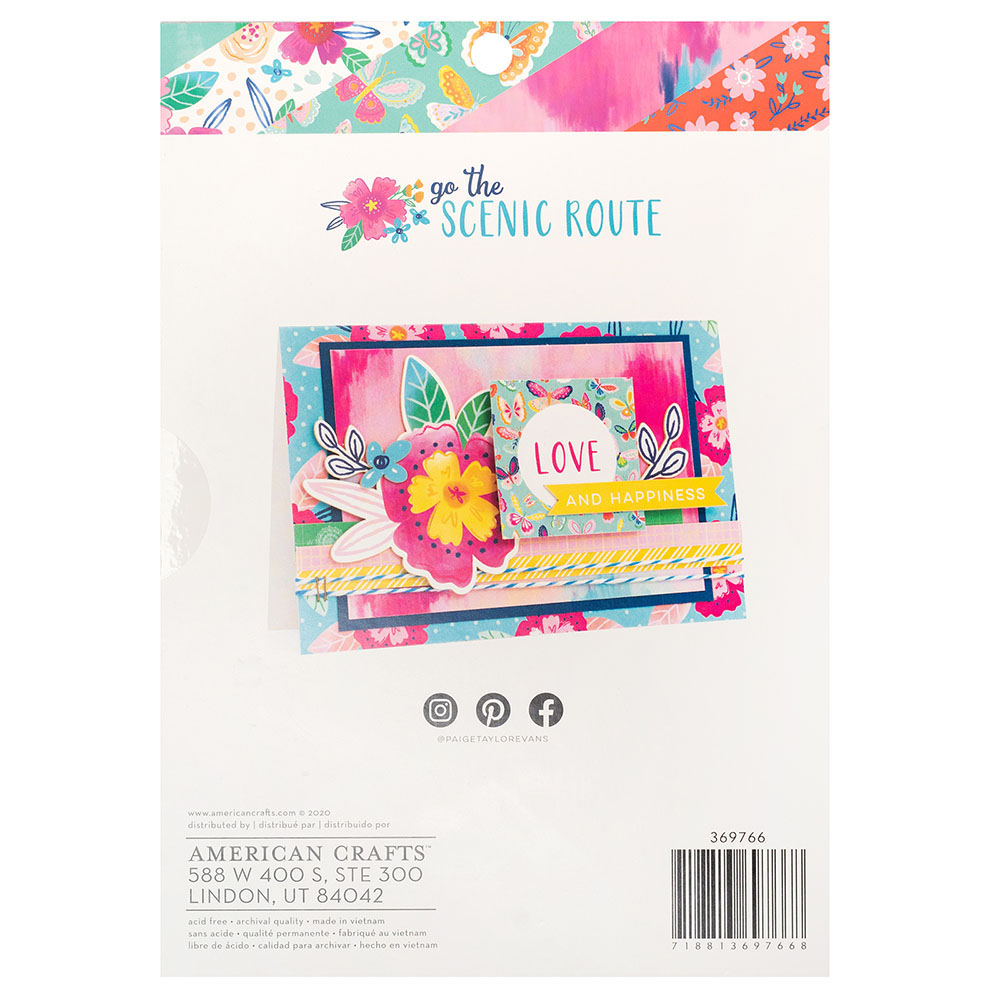 Create a travel journal to document your adventures with the Go the Scenic Route Collection Paper Pad with Navy Foil Accents. Included in the paper pad are 36 sheets of 6″ x 8″ paper with patterns of flowers, birds, watercolors, butterflies, hearts, and more.
