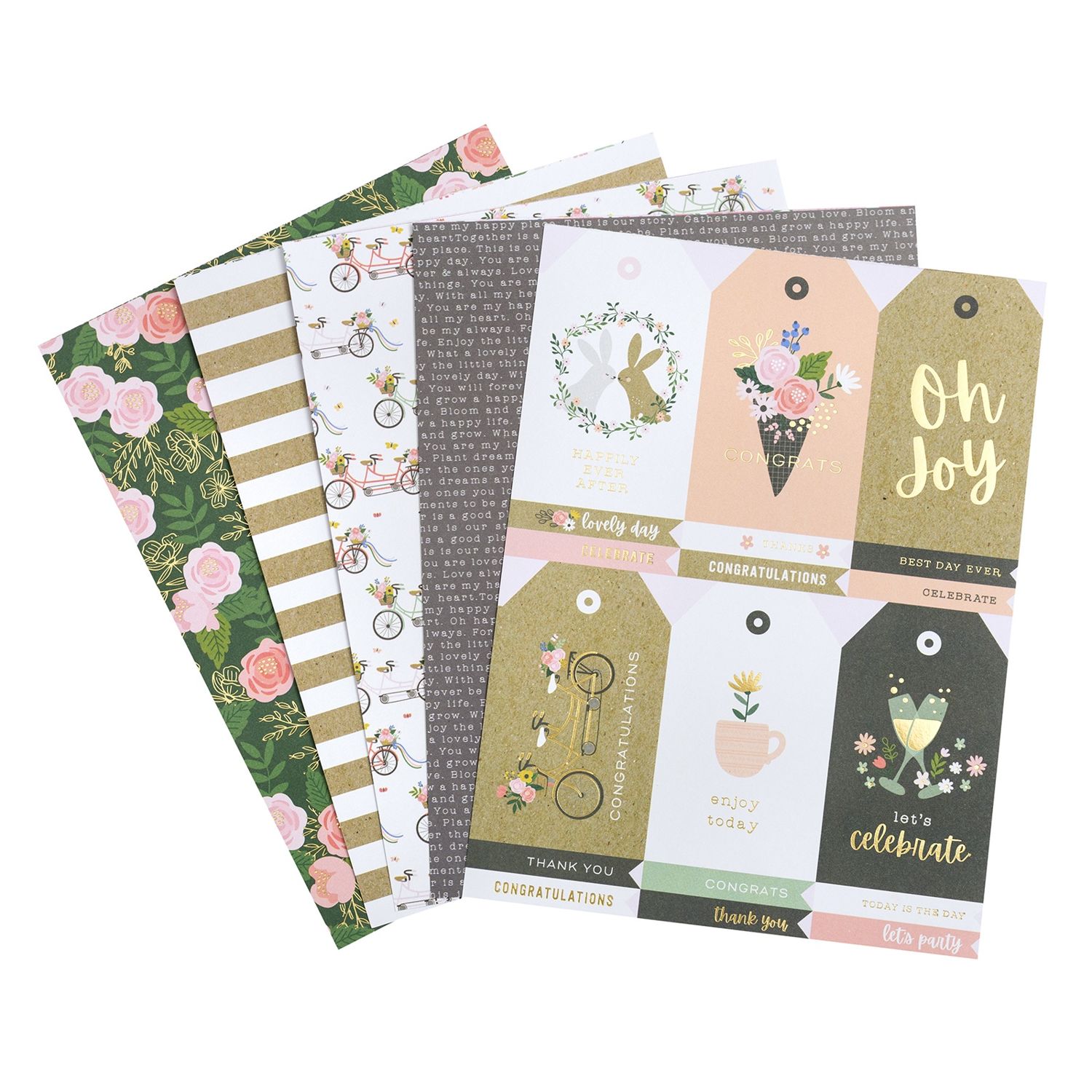 The perfect start to your papercrafting project! This package contains 36 6×8 inch sheets of Single-sided paper in 18 designs (two of each design).