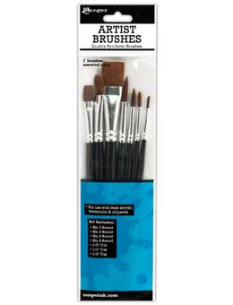 Ranger’s fine quality Artist Brushes are perfect for painting and applying mediums. Use brushes with most acrylic, oil and watercolor paints. Whether you’re a mixed media artist or crafter, these brushes produce smooth, even results. Available in a 7 piece set including a No. 2 Round brush, No. 4 Round brush, No. 6 Round brush, No. 9 Round brush, 3/8” Flat brush, 1/2” Flat brush and a 3/4” Flat brush.