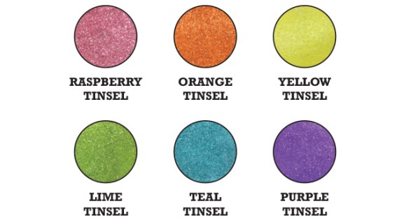 Add dimension and shine to your projects with 6 new sparkly additions to the Ranger Embossing Powder product line! These bright shimmery additions include 6 new Tinsels – Raspberry, Orange, Yellow, Lime, Teal and Purple. Ideal for stamping, lettering, and adding finishing touches to any product. Use Embossing Powders with Ranger’s full line of Embossing Inks and Accessories.