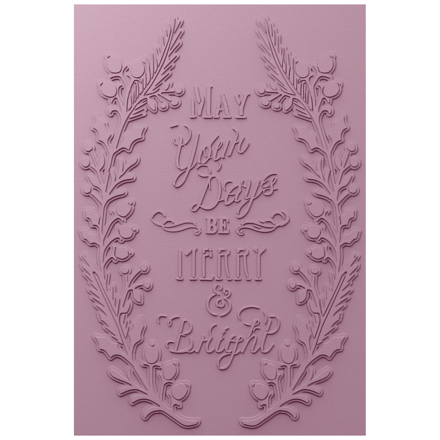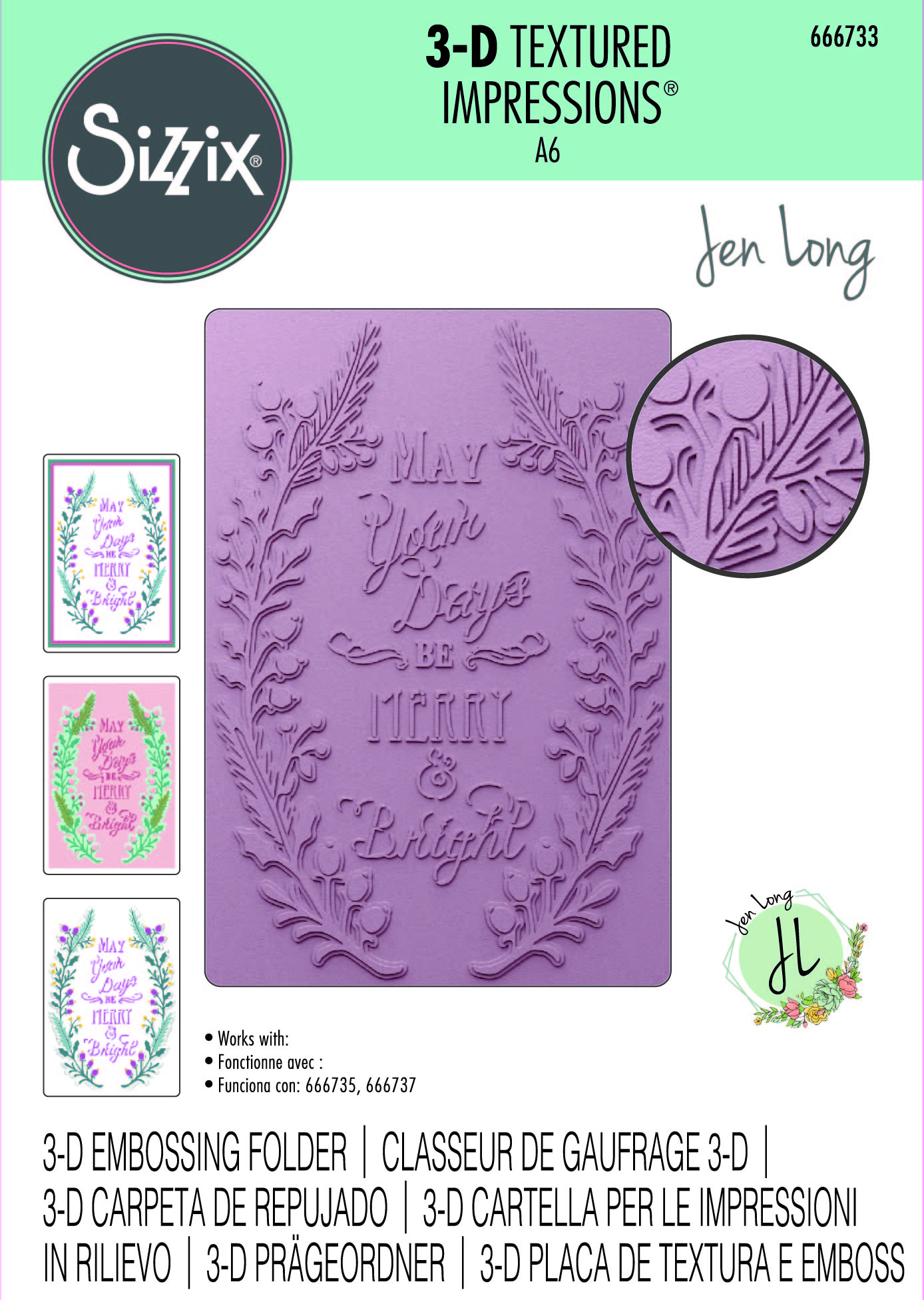 Elevate your holiday crafting to new heights with the 3-D Textured Impressions Embossing Folder Merry & Bright by Jen Long. Immerse yourself in the festive spirit as you add depth and dimension to your projects with this captivating embossing folder. Crafted with precision and designed to impress, this embossing folder features a delightful ‘May Your Days be Merry & Bright’ motif and seasonal foliage designs that instantly infuses your creations with the joy of the season. Whether you’re embellishing cards or holiday decor, this embossing folder adds that special touch of magic to your projects.