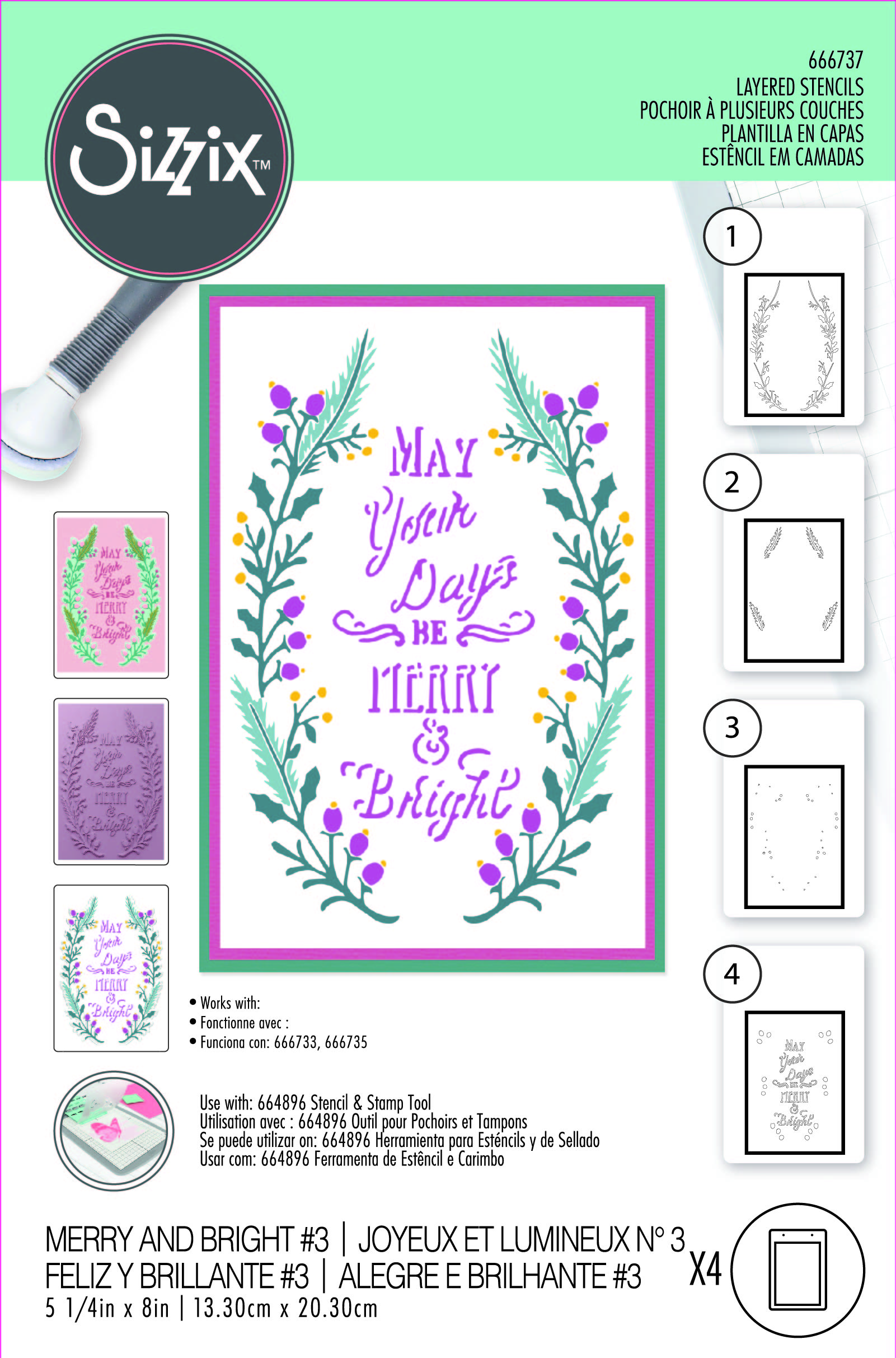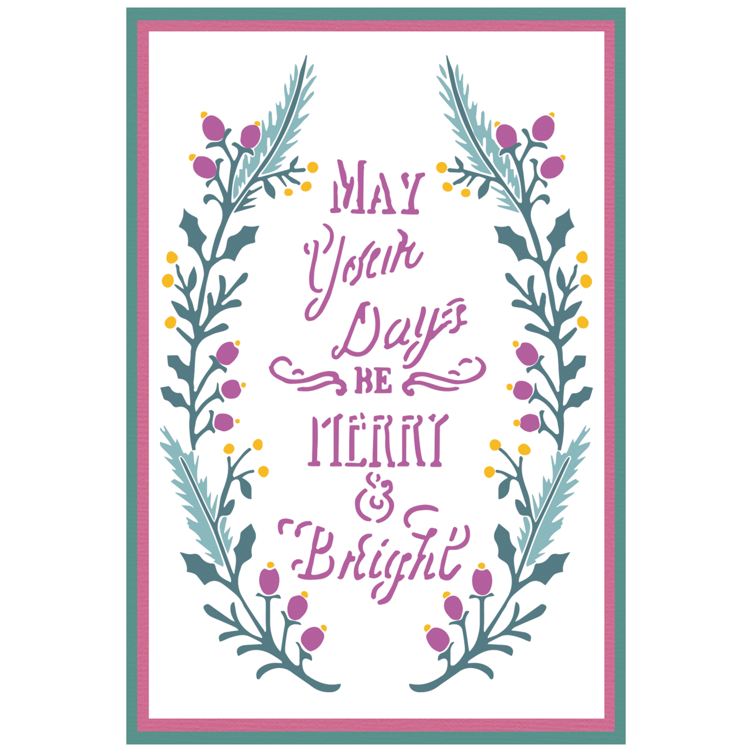 Unleash the magic of the season with this A6 Layered Stencils 4PK – Merry & Bright #3 by Jen Long! Dive into a world of endless creativity as you layer stunning designs onto your holiday projects with ease. Whether you’re adorning cards, gift wrap, or home decor, these stencils offer versatility and charm in abundance. The design of this stencil set includes a ‘May Your Days be Merry & Bright’ motif and beautiful seasonal foliage elements. Embrace the joy of creativity and spread festive cheer with every stroke of your brush!