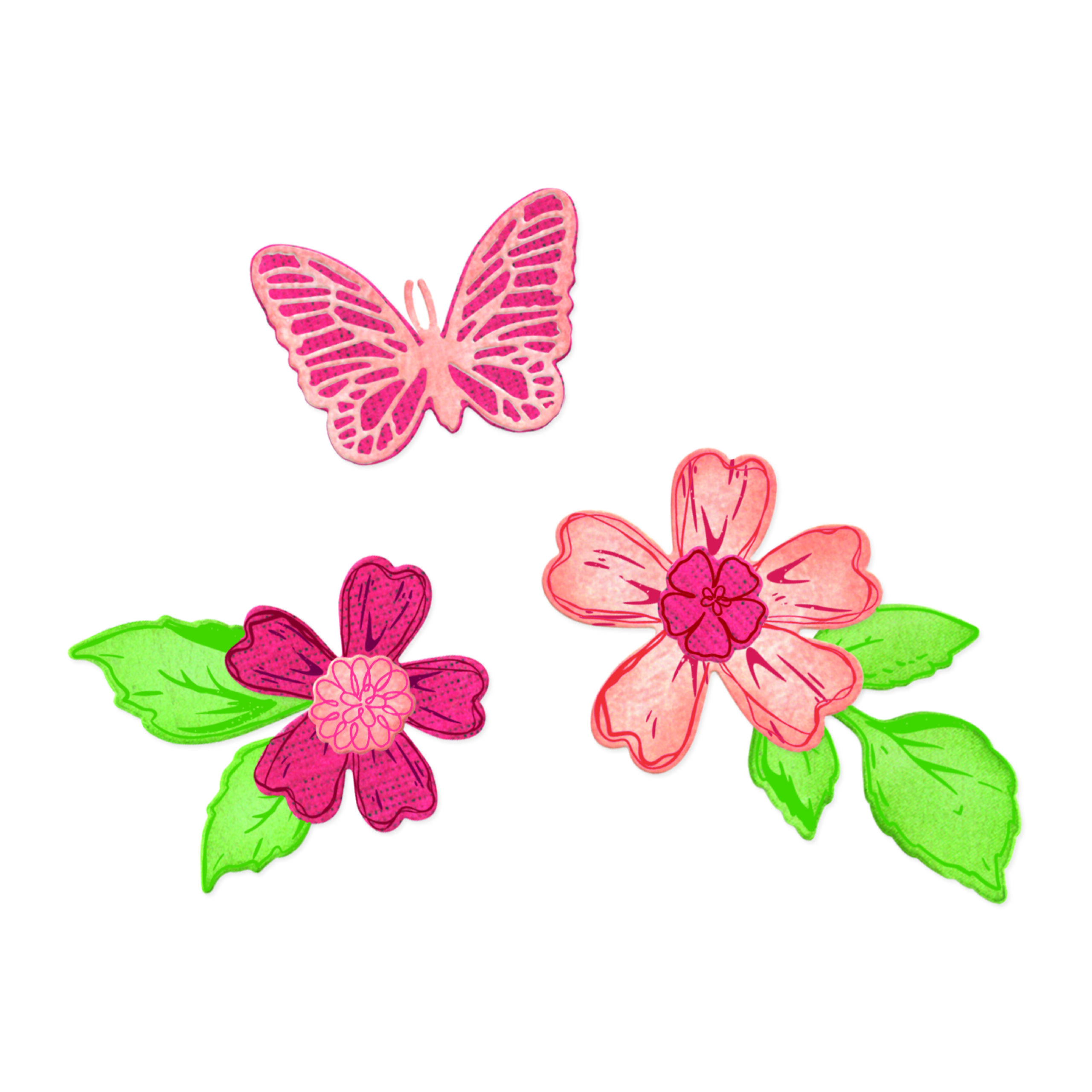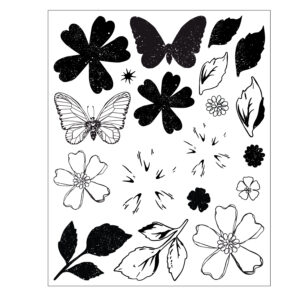 The Sweet Sprigs Clear Stamps and Framelits Die Set by 49 & Market is a 19-piece clear stamp set paired with 9 coordinating Framelits dies, compatible with both the Sizzix Sidekick and Big Shot die-cutting machine. This set allows you to create detailed, layered botanical designs with clean, precise results. Featuring delicate florals, sprigs, and a butterfly, the stamps can be used alone for added texture or paired with the Framelits dies to cut out stamped designs with ease. Perfect for papercraft projects such as scrapbooking, cardmaking, journaling, gift tags, and other creative crafts, this set brings charm, and elegance to every make. The Sweet Sprigs pairs beautifully with the Petal Play A4 Stencil (667061), giving you endless opportunities to layer, combine, and create intricate floral designs for all your crafting projects.