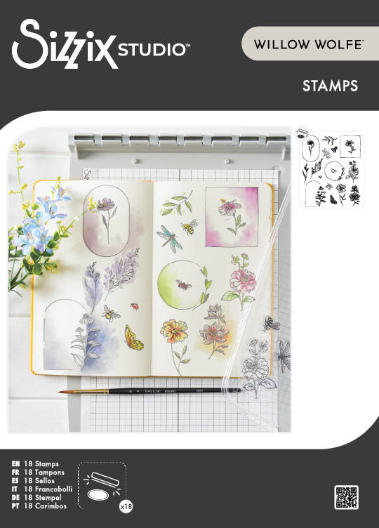 The Sizzix Studio 5×8 Clear Stamp Set 18PK – Floral Frames and Mini Flowers by Willow Wolfe is an impressive 18-piece clear stamp set designed for use with the Sizzix Registration Press Tool. This set lets you add elegant frames, blossoms, and foliage to your makes with precision and ease.