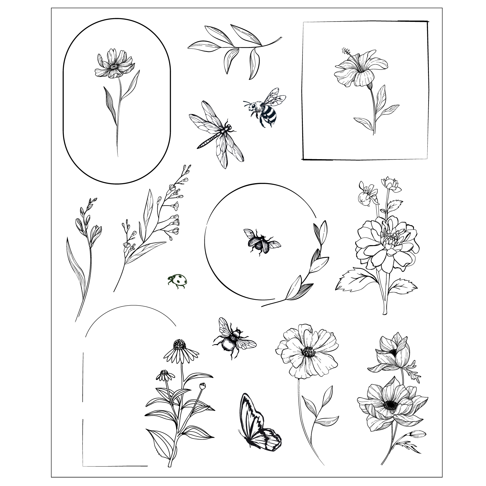 Featuring square, circular, and oval frames paired with delicate flowers and leaves, the stamps are perfect for framing sentiments, embellishing journal pages, accenting cards, and adding subtle botanical touches to mixed media projects. Designed in Willow Wolfe’s signature artistic style, this set brings refined elegance and cohesive, hand-crafted charm to every make.