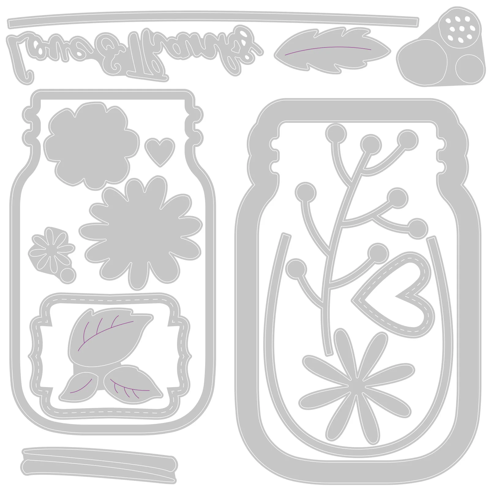 This pretty floral die includes a solid jar as well as jar outline is perfect for a range of occasions. With a wide assortment of florals and stems to choose from as well as love and thank phrases, you are sure to impress with this set.