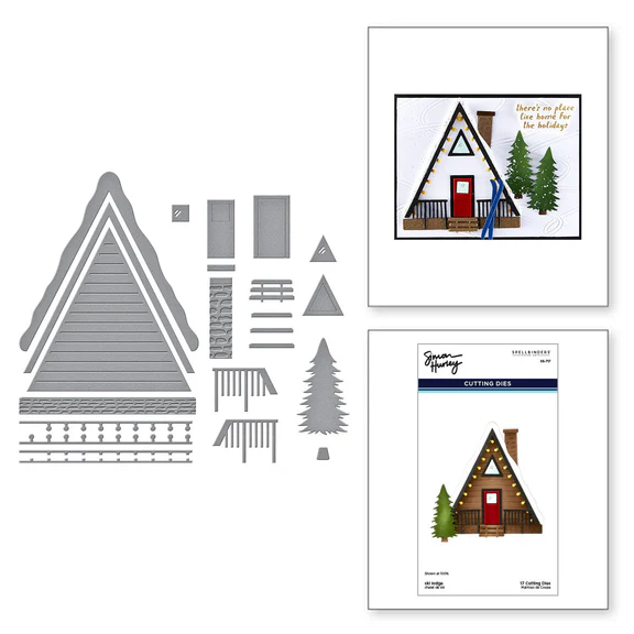 Ski Lodge Etched Dies are part of the Ski-son’s Greetings Collection by Simon Hurley. Put together a fabulous Alpine Ski Lodge with this set of 17 thin metal cutting dies! No detail is left out: the brick details add the perfect texture, the snow lined roof top sets a wintery feel, and twinkle lights add charm and sparkle. Just add the friends from S3-563 Hit the Slopes Dies!