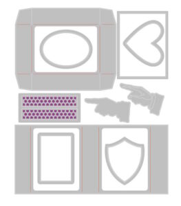 Unlock the magic of miniature crafting today with the Vault Matchbox die by Tim Holtz®. Create endless matchboxes into extraordinary creations with this 10 pack die set that includes shapes to decorate your matchboxes including a heart, a shield, an oval and more.  Whether you are a regular maker or just starting out, this die set is perfect for igniting your imagination and crafting something truly unique.