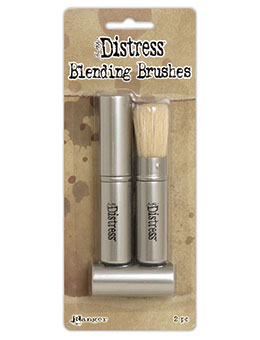 Tim Holtz Distress® Blending Brushes are firm bristled brushes designed to create soft blends for backgrounds. Use to easily apply Distress Inks and Distress Oxides directly to surface, or apply through stencils for shaded effects. Distress® Blending Brushes are made with natural fibers. The compact, retractable design is ideal for convenient storage. Up to 7 brushes fit in the Mini Distress® Ink Storage Tin (sold separately).