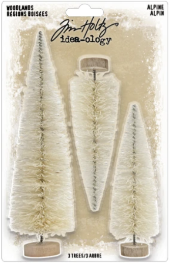 Create a cozy alpine retreat with Tim Holtz Idea-ology Woodlands Alpine Trees. These tall, narrow bottle-brush trees are perfect for snowy vignettes, mantel scenes, or adding a vertical element to Christmas displays.