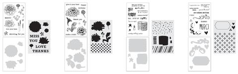 Available in four sets, each containing stamps, dies, and a stencil.